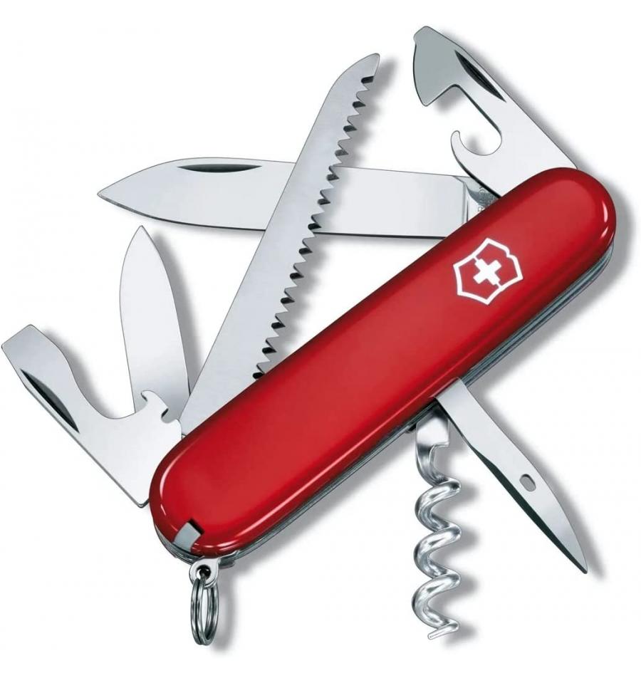 A large sheet of paper.Little leaf.Corkscrew.Opener.Small screwdriver.Opener.Large screwdriver.Desaislador wire stripper.Punch.Ring stainless.Tweezers.Toothpick.Saw for wood.