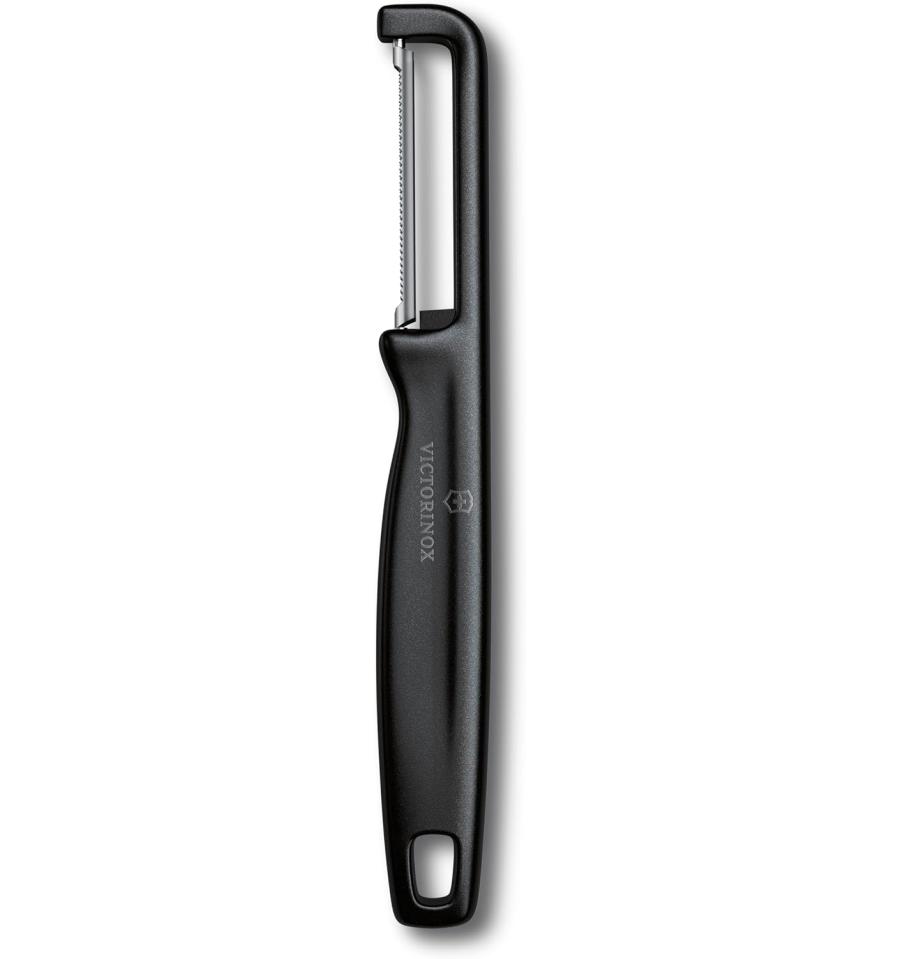 pelador Iota, inspirado en la colección Swiss Classic, entra naturalmente en esa categoría. Está fabricado con polipropileno resistente y posee un diseño ergonómico que se adapta a cualquier mano. Esta versión del Iota cuenta con una hoja aserrada, ideal para pelar alimentos
