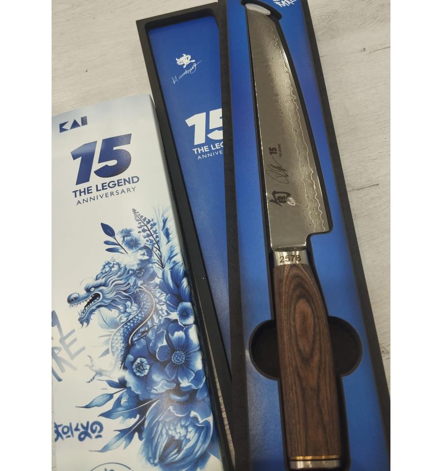 La hoja de este Shun Premier está formada por un núcleo compuesto por un acero VG Max de extremada dureza y revestido de 32 capas de acero de Damasco. Esta combinación de varios tipos de acero hace que el filo sea duro y flexible a la vez. Su hoja de doble filo es cómoda de manipular gracias a su ligereza y garantiza un corte limpio y preciso. Su forma simétrica es adecuada para diestros y zurdos.