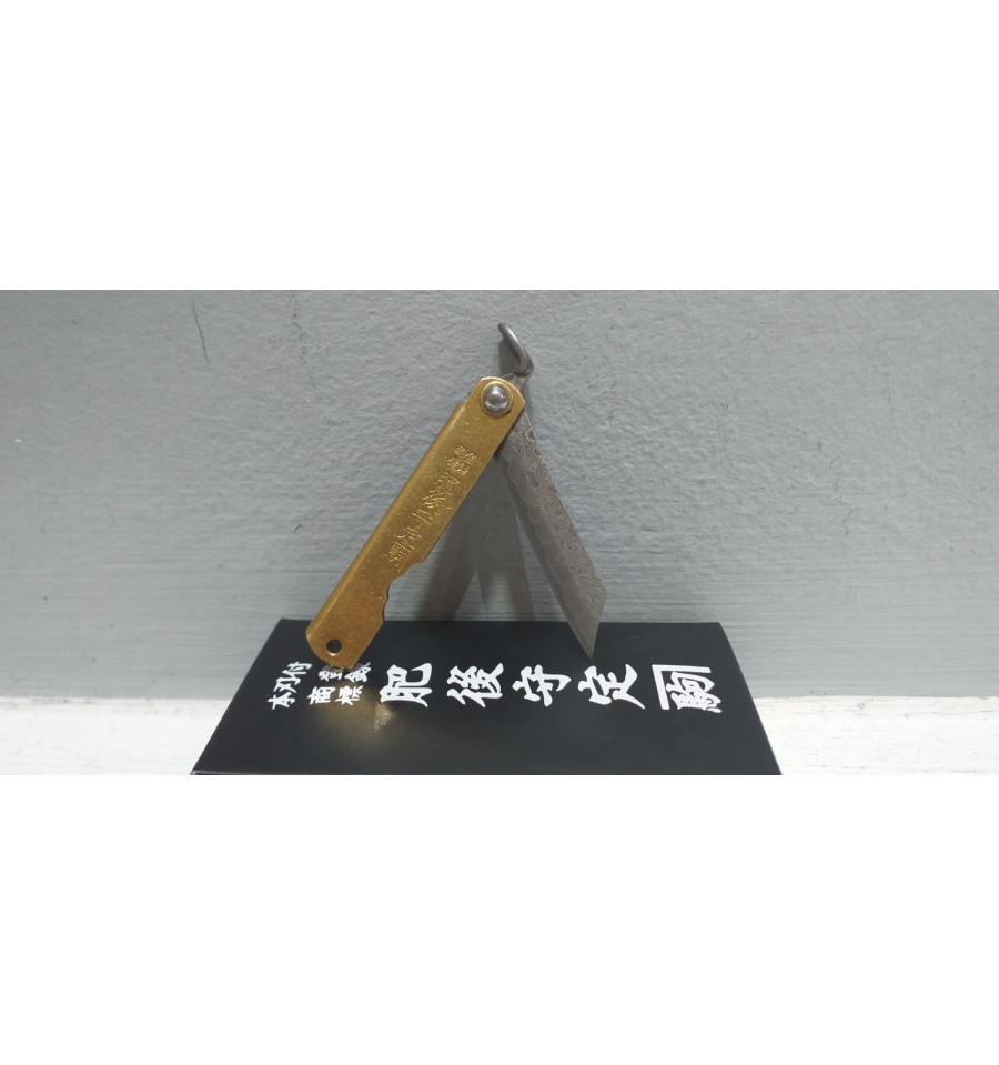 Con una longitud total de casi nueve centímetros, la Higonokami Bonsai Hoseki Damascus es una de las navajas de bolsillo más pequeñas de nuestra gama. La versión en miniatura del cuchillo japonés tradicional está hecha de latón, por lo que se forma una pátina única con el tiempo. La hoja estrecha está hecha de damasco de alta calidad . Con orificio para cordón