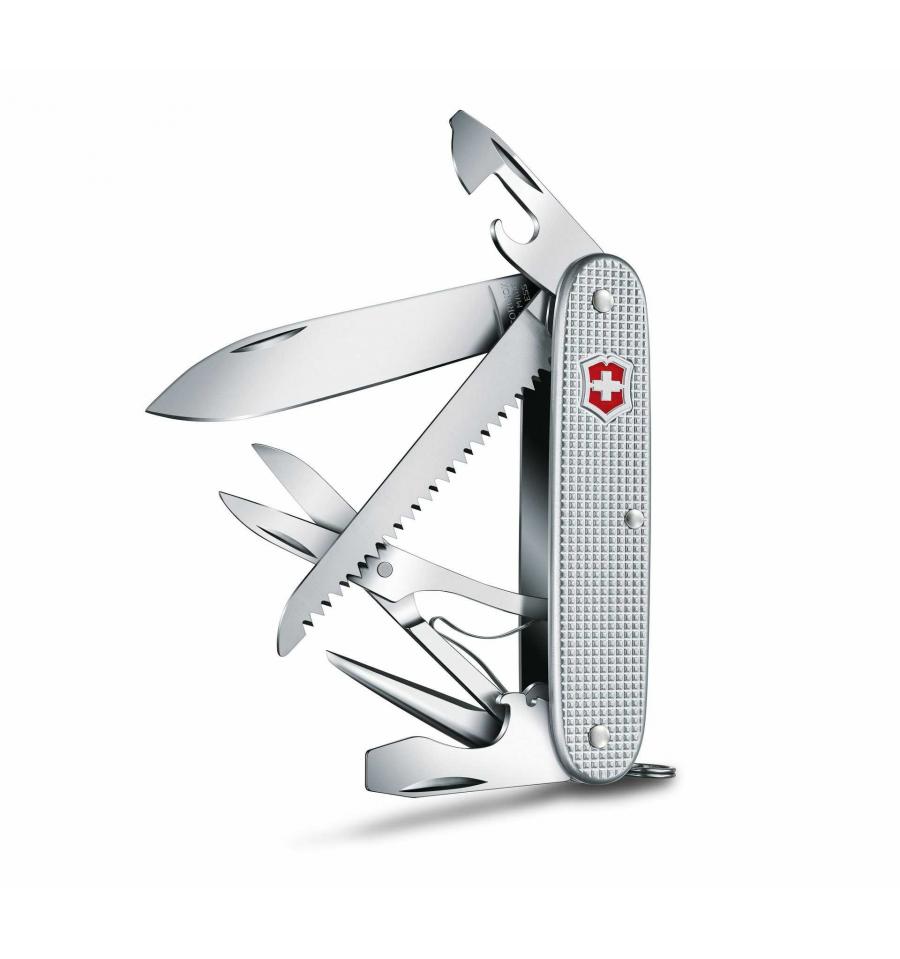 Inspirada en la clásica navaja de soldado, esta robusta navaja reúne muchas funciones útiles en una resistente cacha estriada de Alox, incluyendo una sierra para madera y un punzón.