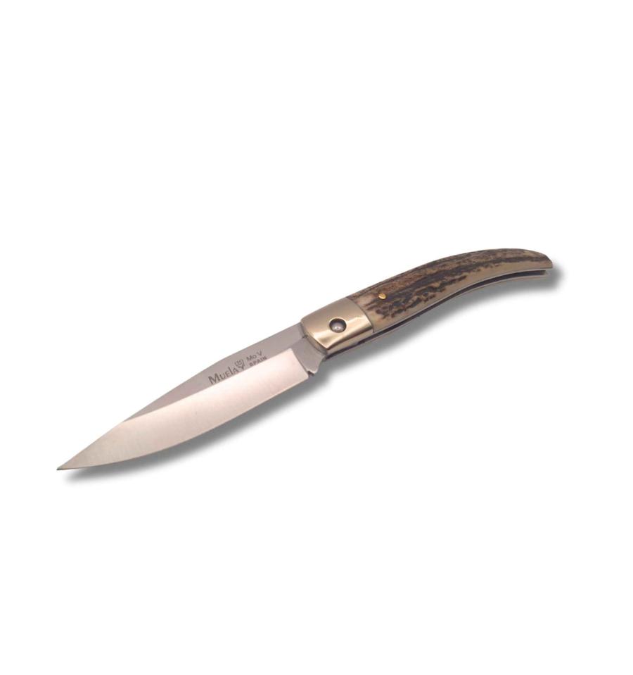 P-8VA Navaja de Muela con hoja de acero 1.4116,virola de acero , mango en ciervo , sistema de cierre de pistón, tamaño de hoja 85 mm.
