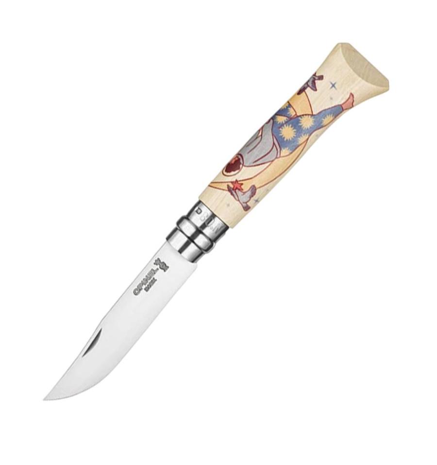 La navaja lleva un mango de carpe con certificado PEFC y decoración por sublimación, así como una hoja de acero inoxidable de 8,5 cm. Hecha en Francia, viene además con una bonita caja y una tarjeta postal.